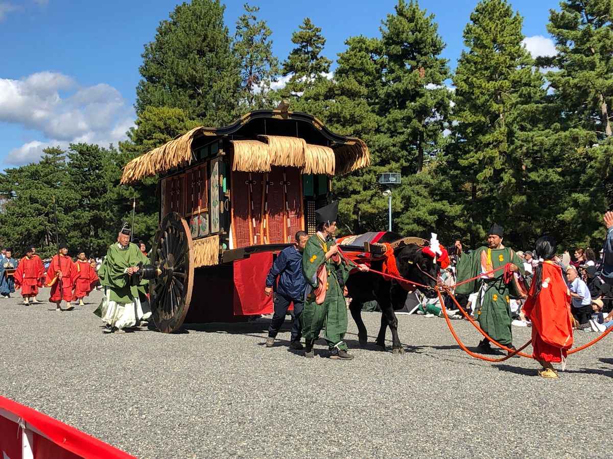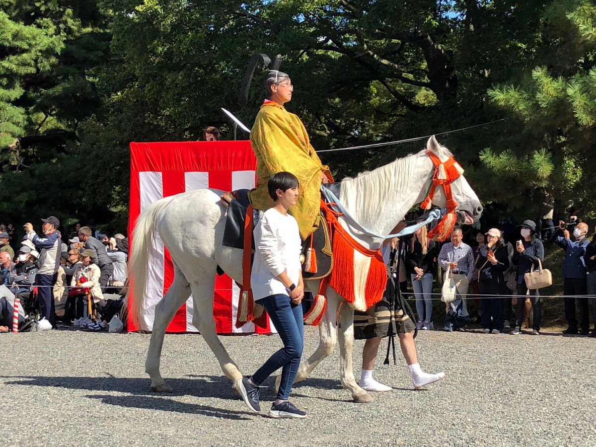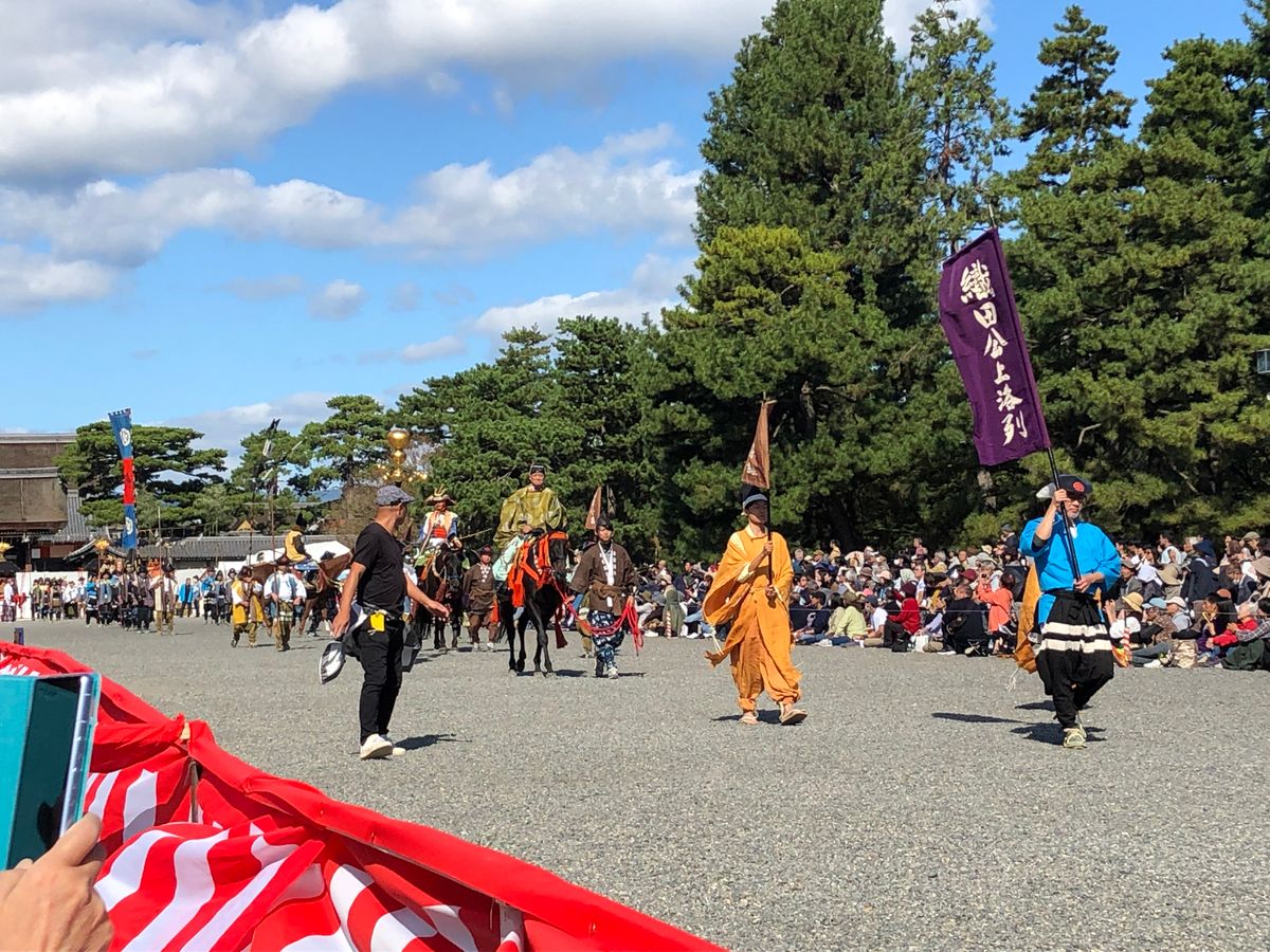 初めての時代祭、ホテルへ迎車してもらい観覧場所の京都御所へ。観覧席は最前列で行列をアップで観る事が出来ました。94歳の父も大満足でご機嫌でした。