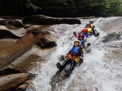 日本屈指のキャニオニングスポット、国立公園「滑床渓谷」で迫力満点のキャニオニング体験はいかがですか?経験豊富なプロのリバーガイドが、愛媛の自然と遊び、自然を学び、おもいきり自然を満喫していただけるようご案内します。キャニオニングに必要な装備品はすべてレンタル無料ですのでお気軽にご参加いただけます。