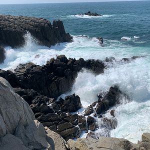 東尋坊では船に乗るのは時間的にお勧めしないとのことでしたが、せっかく来たので船に乗りました。所要時間は1時間程度、船着場まではかなり傾斜のキツい岩場です。足腰しっかりしていないと難しいかと思います。船は大きく揺れ、悲鳴が響いています。お尻が浮くくらいには揺れ、嘔吐される方もいらっしゃいます。船を降り、飲食店を覗きますがどこも混んでおり昼食を諦めました。
