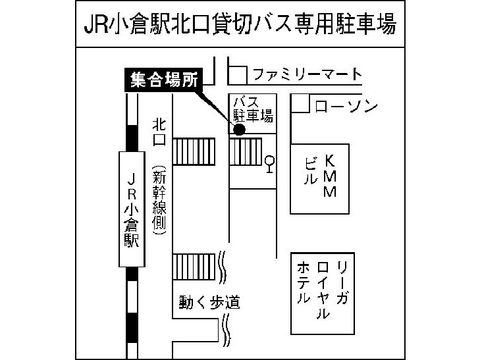 小倉駅北口貸切バス専用駐車場にお越しください。