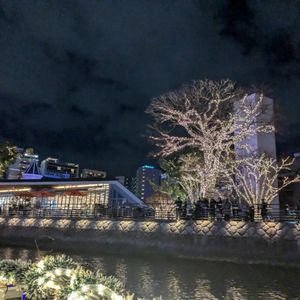 川から海の方まで出てポートタワーやベイサイドプレイスまで、遠くの夜景を観ることができた。