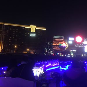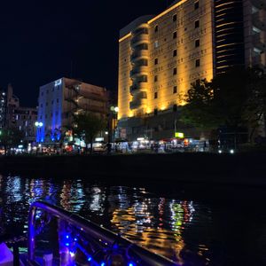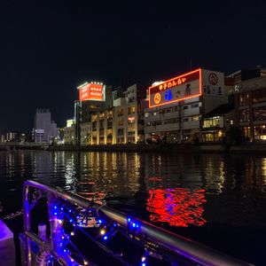 調度日が暮れて川面に映る看板の電飾や夜景がとても綺麗でした。