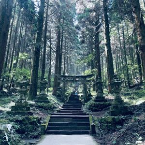 始めに到着したのは南阿蘇の上色見熊野座神社長く急な階段を息を切らせて上がると神殿があります。