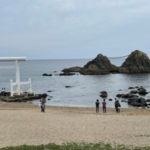 本来、車窓での観光であった二見ヶ浦では、少し時間があったため5分間だけ車から降りて見ることができました!