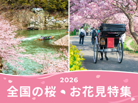 全国各地の桜の名所やお花見スポットをご紹介! 東京や大阪発着で気軽に参加できる日帰りツアーや、個人ではアクセスしにくい場所へドライバーがご案内する貸切タクシーなど、咲き始めから満開まで、桜の季節を存分に満喫できるツアー・アクティビティが勢ぞろい。 人気ツアーは完売必至につき、ご予約はお早めに!