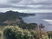 有川を発着点に、中通島北部を回っていただきました。 申込時に、ざっくりと見たい場所を記入していましたが、当日、他の名所も盛り込んだ詳細な行程表を見せていただき、驚きました。 そして、行程表をご用意いただいていたのに、ルート変更を伴う当日のリクエストに快く応じてくださり、恐縮しました。(次回は事前にご連絡します!) 細い山道や、写真のような断崖の上の道を安全に運転してくださったおかげで、各スポッ