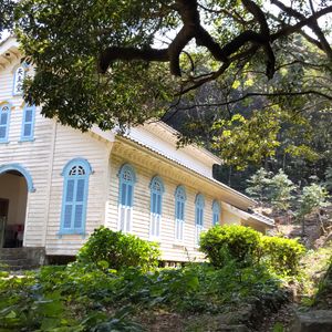 浜脇教会はタクシーの車窓からチラッとしか見られないので、撮影したければ左後方の席を確保してください。