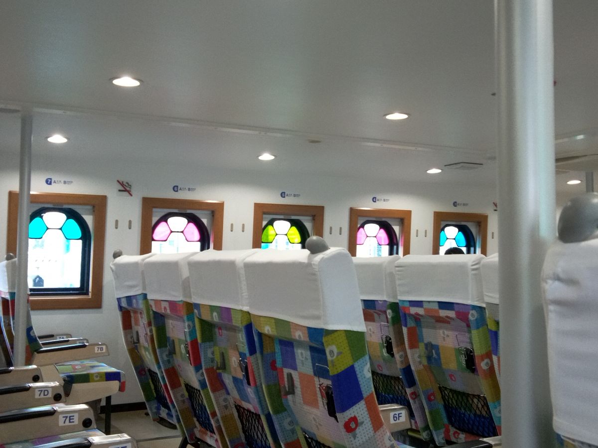 長崎から福江島までだいたい1時間半、船内にはテレビやWi-Fiも備わっていてあっという間です。