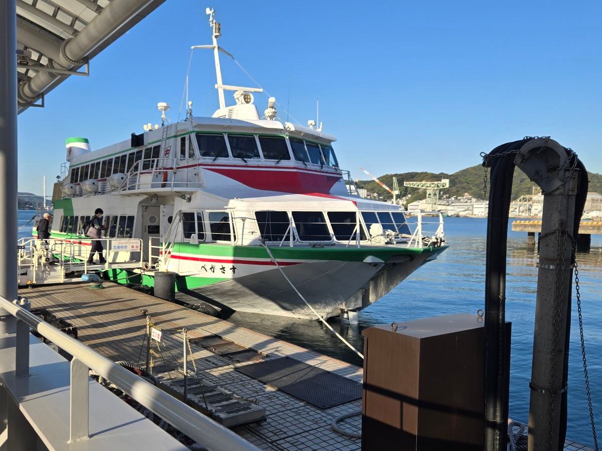 事前予約のため、九州商船窓口で予約確定のスマホを見せて、乗船券を受け取ります。ベルトラで予約すると割引になります。席は自動で割り当てられます。1人利用で隣は空席だったため、快適でした。揺れは殆どありませんでしたし、定時運行でした。