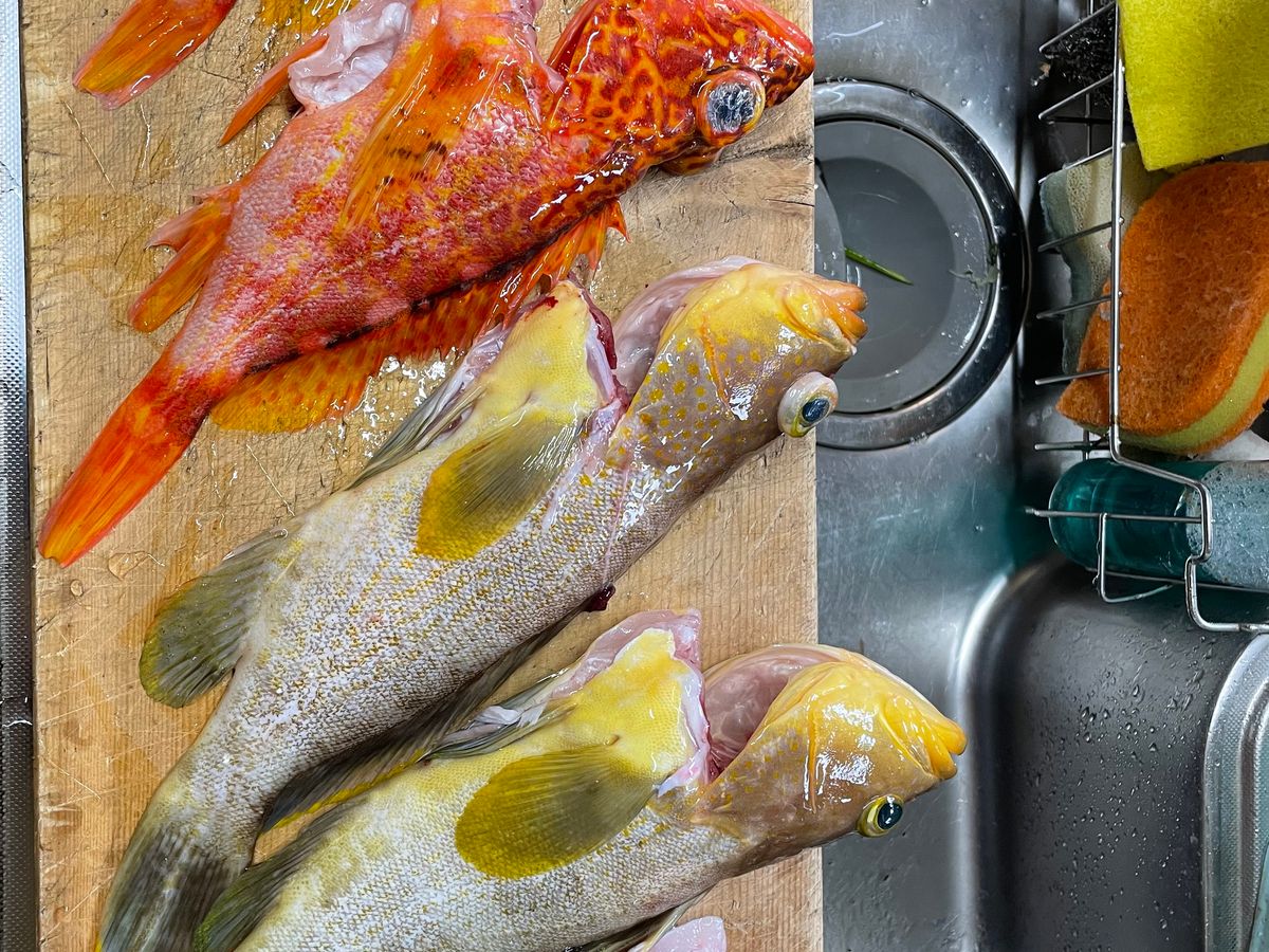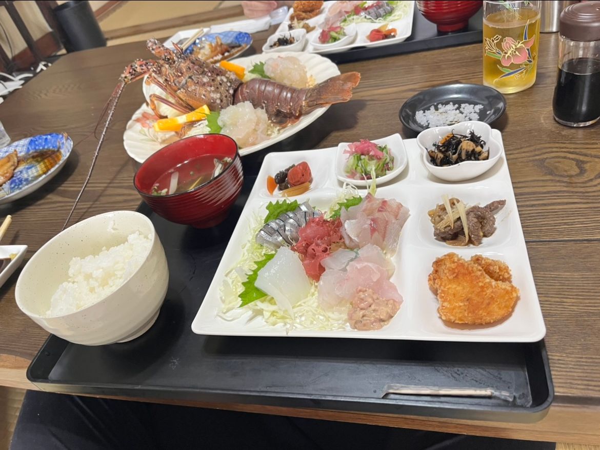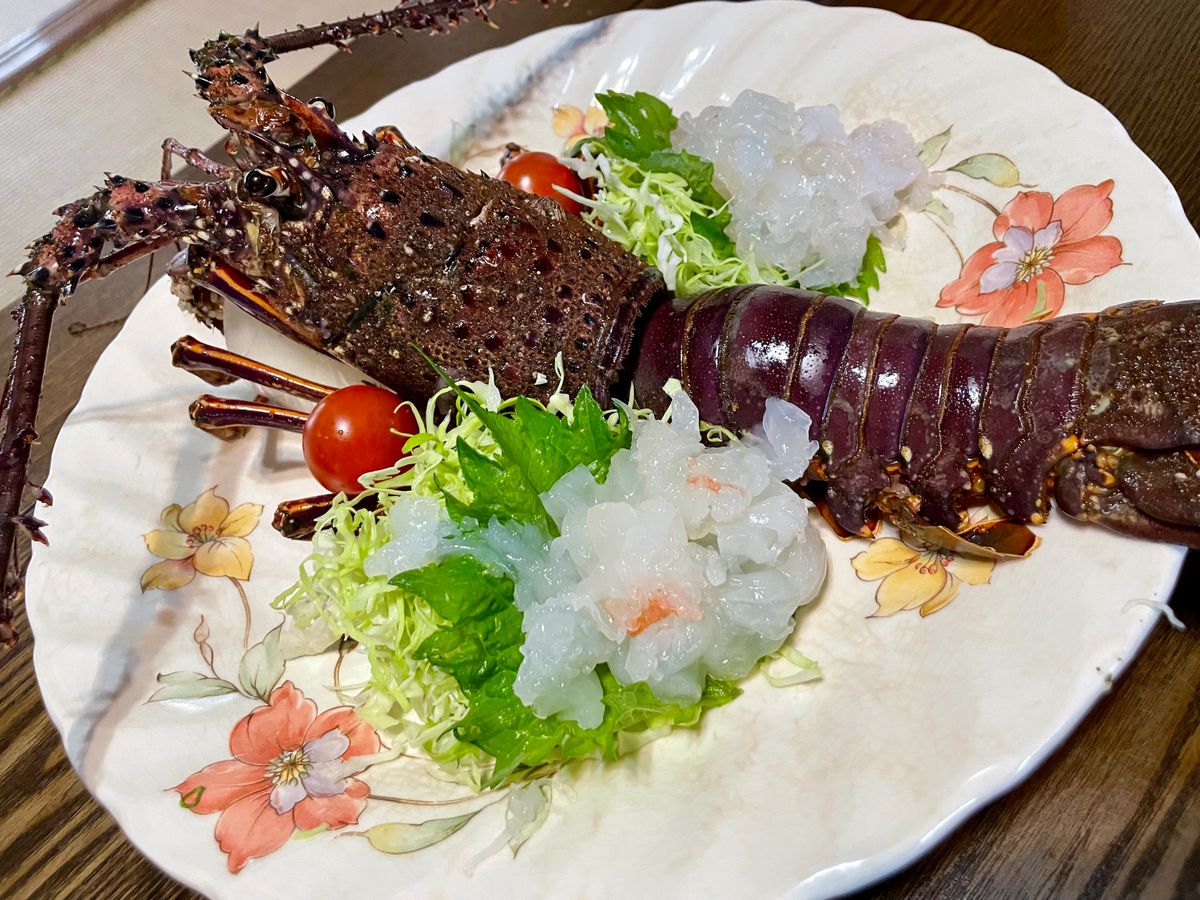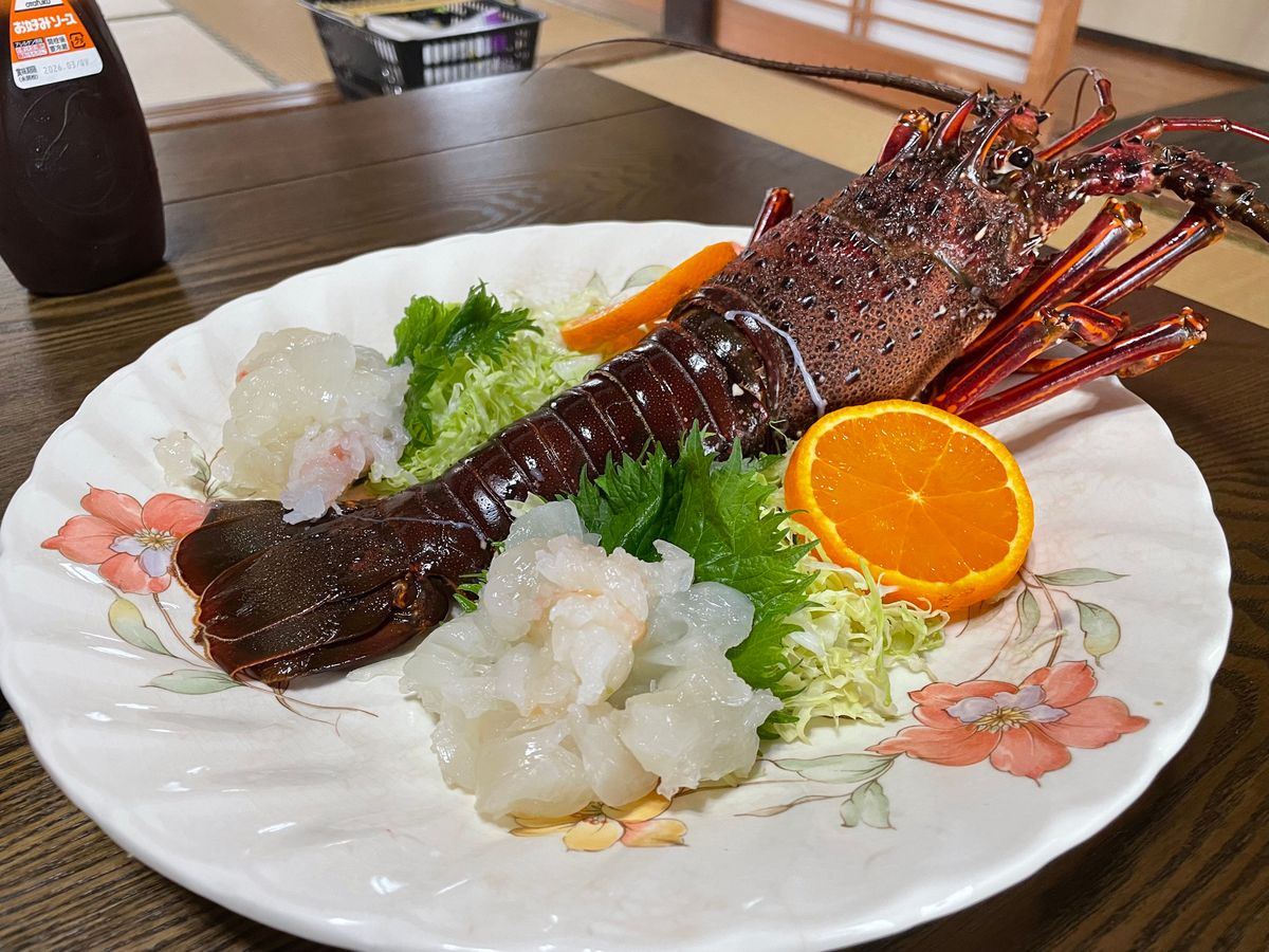 私が参加した日は前日の悪天候の影響が残り、ややうねりのある海況。前日は早目に寝て、当日は早めの朝ごはん、しっかり酔い止めを飲んで準備万全で挑みましたが、ポイントに着いて10分ほどで。。。。松本さん、ごめんなさい。船着場に戻って、奥様がお迎えに来てくれて、少し休んで早めの漁師飯。刺身、煮魚、天ぷら、お味噌汁、最高に美味しかったです。なんと伊勢海老も丸々一匹登場!!!贅沢すぎます。お母さんの手料理、最高。そして、面白くて可愛すぎて、居心地が良すぎて、松本夫婦が最高です。