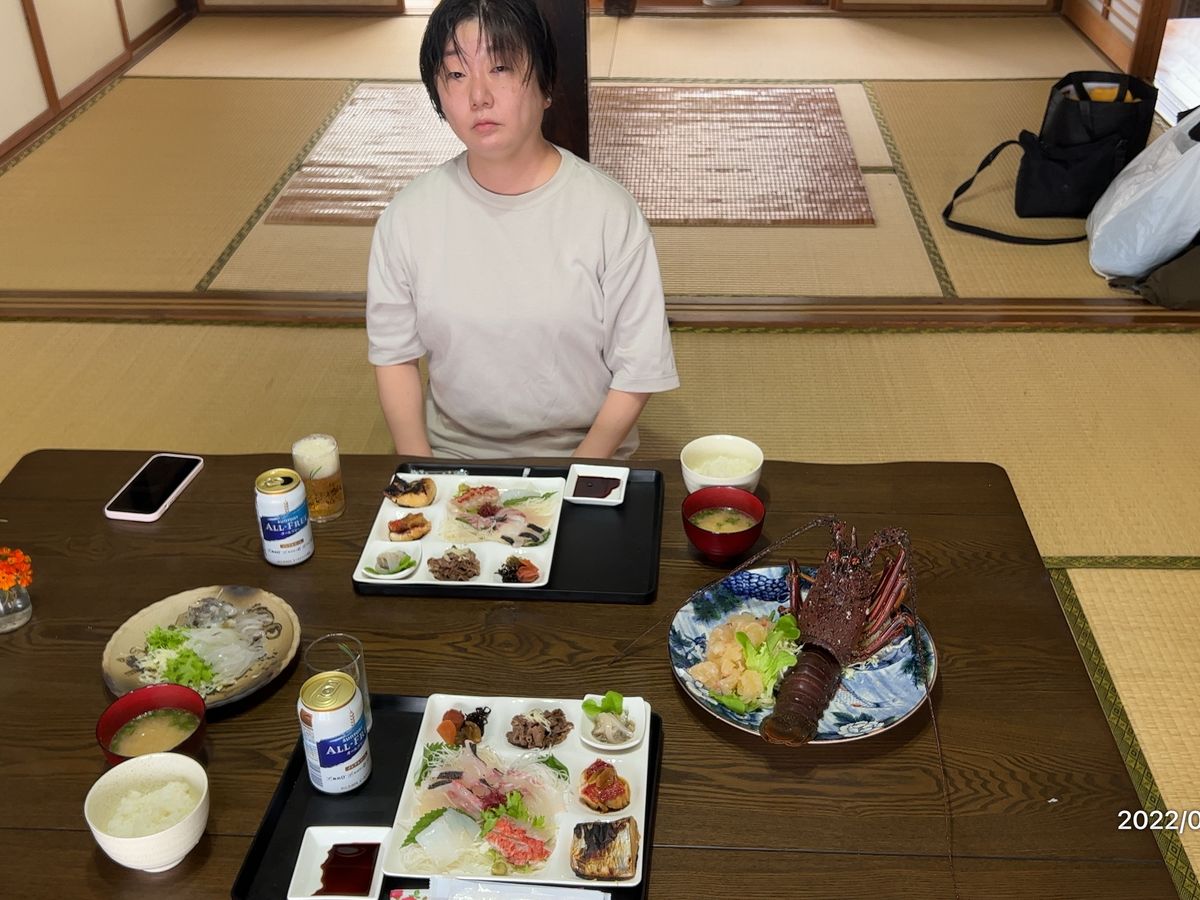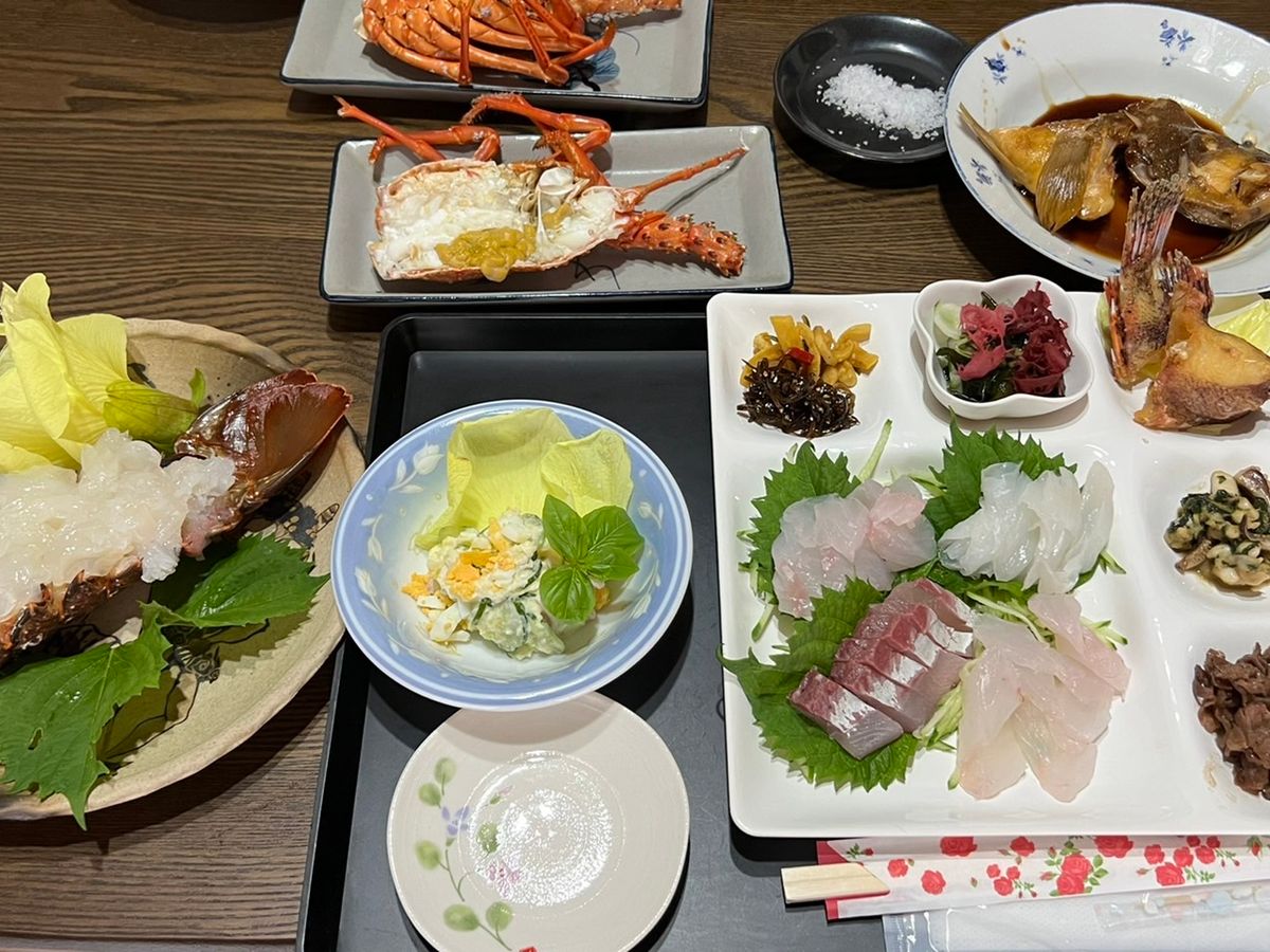 帰港後、船長さんの民泊で食事したのですが、昼からこんなに贅沢していいのかと思うほどの内容で、地産の海の幸をお腹いっぱい楽しみました。