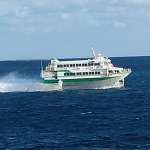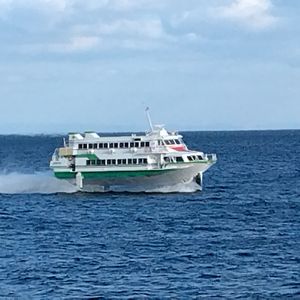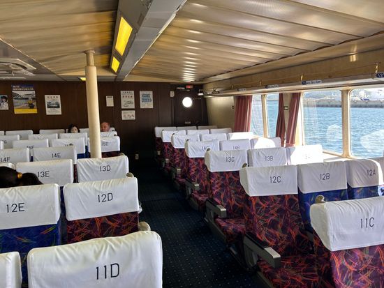 1時間ちょっとの乗船でしたが、全く船酔いもせず快適でした!ジェットフォイルは空中に浮かんで走るので揺れもなく飛行機に乗っているようです。