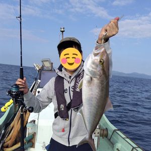娘さん カンパチが釣れて、釣りガール誕生しました。