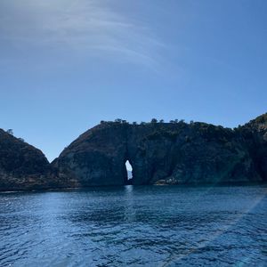 港を離れてまず樹齢670年を超えると言われるあこう樹の下をくぐって神社をお参りします。上五島のパワースポットのようです。その後、島の反対側の桐地方方面に移動して、待機していたレジャー船に乗り換えます。大きな船ではありませんが、天気も良かったせいかそれほど揺れませんでした。そこからキリシタン洞窟を目指します。船を操縦する方と案内してくれる方のお二人が対応してくれました。案内いただいた方はしきりに、いま満潮なので上陸できなくて申し訳ないと行ってらっしゃいましたが、もともと上陸できないことを前提のツアーなのでかまいません。マリア像と十字架は遠くからでもはっきりと拝見出来ました。帰りの航路でも、野生動物が見えたり、養殖場所が拝見できたり、興味深かったです。