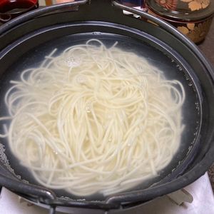 昼食は有川港近くの「扇寿(センジュ)」というお店の五島うどん地獄炊き+海鮮丼セットです。上五島の地獄炊きうどんは細くてもコシがあり、うどんをとる専用のすくい棒を使って鍋からすくいます。これが予想以上に麺をきちんとすくってくれます。それをアゴ出汁のつけ汁につけて食べます。海鮮丼はご飯が少なめで、たしかにうどんとセットではこれくらいがちょうどいいのです。五島列島で食べるランチはこれが最初で最後かもしれません。そう思うと愛おしく思えました。