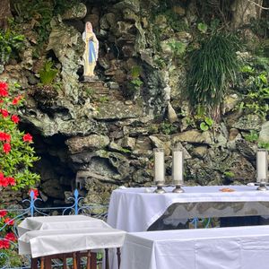 ホテル発の観光バスで福江港へ。乗車券を受取り、井持浦教会とルルドを見学する。ルルドは仏蘭西ルルドの聖水を加えた日本初のルルドとのことで、これをルルドと呼ぶのも信仰の1つと感じる。