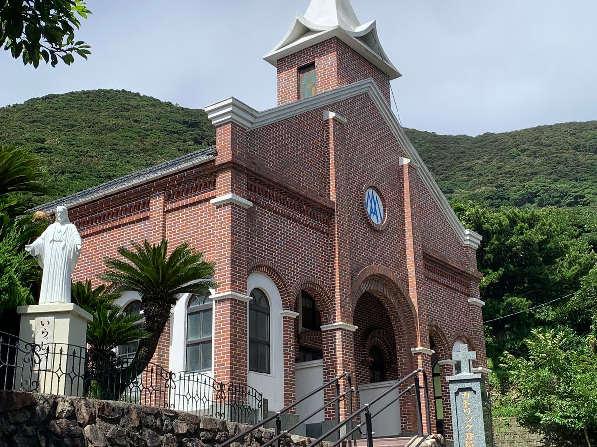 福江港からジェットフォイルで上五島に渡りました。ドライバーさんが港で待っていて下さりそこから島の教会巡りがスタートしました。ルートも教会もドライバーさんにお任せでしたが、事前に希望を聞いていてもらっていたので自分の思う通りの観光が出来ました。海を望むように建てられた教会はそれぞれが個性を持っていますが、信者さんの信仰心の篤さは皆同じ。梅雨明けの太陽と静かな海と白い教会のコントラストは、厳しい歴史の上に成り立っているという事を忘れずに、静かに祈りがなら廻らせて頂きました。