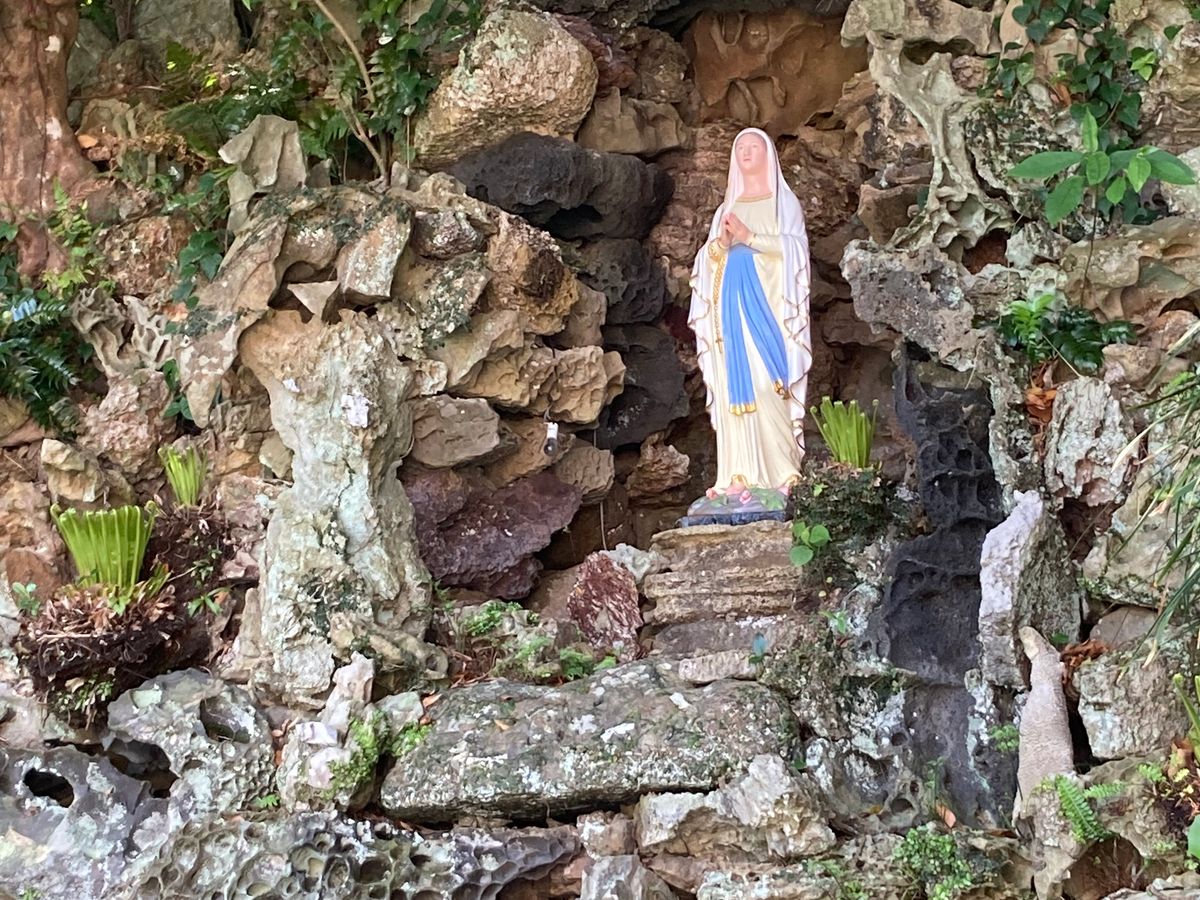ホテル発の観光バスで福江港へ。乗車券を受取り、井持浦教会とルルドを見学する。ルルドは仏蘭西ルルドの聖水を加えた日本初のルルドとのことで、これをルルドと呼ぶのも信仰の1つと感じる。