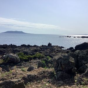 あぶんぜビジターセンターでは映像や展示を見た後、展望所から溶岩海岸を見下ろしたり、遊歩道を散策したりしました。そこかしこで、くみさんが写真やイラストをパネルで見せながらガイドしてくださるのですが、地学的なことだけでなく、植物や虫のこと、島の歴史等、幅広い知識をお持ちなので、多岐に渡るお話を楽しめました。自分達だけで歩いて見てまわっても気付けなかったポイントを、たくさん教えて頂けたと思います。