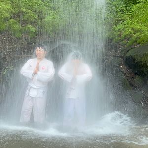 滝の水量は大したことなさそうでしたがいざ浴びてみると見た目とは違い、質量と冷たさで身体が硬直しました。事前説明の通りに滝に打たれながら数を数えて声だし練習からでしたね。