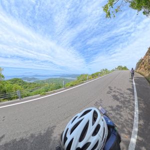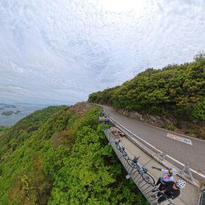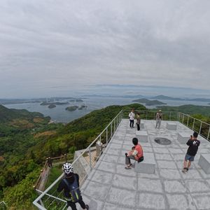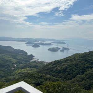 亀老山展望台までサイクルタクシーで連れて行ってもらえ、ポスターなどで良く見る景色を見られました。ただ午後から曇ってきたので青空じゃなかったのが残念でした。下りはタクシーではなく対向車が登ってくる中、自力で降りなければならず、なかなかスリリングな体験でした。