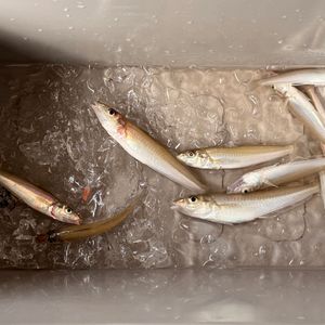 釣竿もエサも、エサをつける事、釣った魚を外してクーラーボックスに入れて氷入りのスチロールの箱に入れてくれるまで完璧な至れりつくせり!!キスが15匹くらい釣れました。一回ものすごい引きがあり、船頭さんがタモ網まで用意してくれたのにバラしてしまったのが唯一の残念なことでした。当日泊まった旅館で3匹をお刺身に、残りを天ぷらにしてもらい、美味しくいただきました!