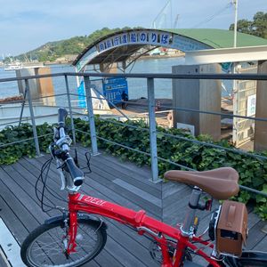 尾道でE-BIKEをレンタルし、まずは向島行きの渡船にE-BIKEごと乗船しました。向島からはE-BIKEで因島・生口島を巡り、生口島から尾道へはフェリーを利用しました。