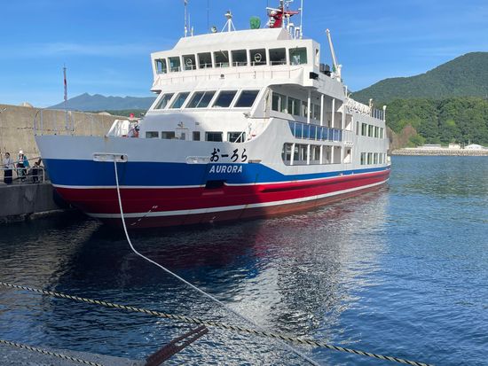 港では霧が出ていたので、ホエールウォッチングに影響がないか心配でしたが、沖に出たら霧もはれて国後島も見えました。