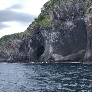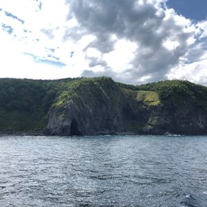 鯨って日常生活では程遠い存在だし、動物界でも群を抜いた巨大生物なので映画の中だけの生き物な気がしてました。当日は本当に存在するのかな〜と言いながら正直あまり期待せずに、それでも心の中では幻のような存在の鯨を一度はこの目で見てみたいという気持ちで参加しました。当日はお天気が曇り空だったこともあってか私たち2人だけでした。30分ほど船に揺られ、一つ目の出没スポットに到着しましたが、鯨は現れず、続いて二つ目のスポットでも現れませんでした。三つ目のスポットでここで気配がなければ、帰るよ〜とスタッフの方に言われてもうだめかな〜と思ってましたが鯨の鳴き声が聞こえたので暫く待ってみました。すると、巨大な鯨が2匹水面に姿を表しました、スタッフの方曰く13メートルほどの体調とのこと。あまりの大きさと迫力と実在していた驚きで感無量でした!鯨を見つけるまでに、イルカが泳いでいる姿もたくさん見ることができました。私たち2人だけの為に、いくつもスポットを回って鯨を探して頂きありがとうございました。知床旅行で忘れられない思い出になりました。