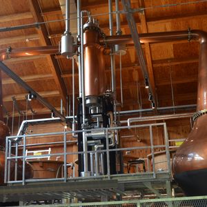 食事会場のすぐ近くにウイスキーのニセコ蒸溜所があり、ほとんどの参加者が見学しました。製作工程の解説はありませんが、すでに発売されているジンの有料試飲などもあり、ポットスティル(蒸留器)を眺めながら思い思いにひとときを楽しんでいました。