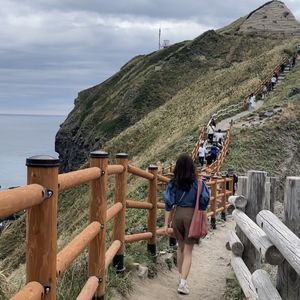 海沿いの断崖絶壁のような所ですが、地形の影響なのか風が強く吹くところもあれば全然というところもあり、曇り空で助かりました。