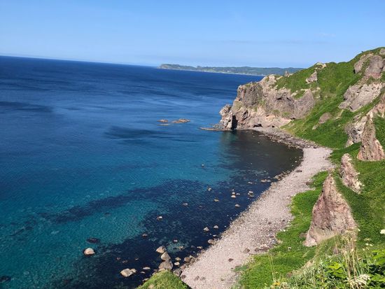 神威岬はエメラルドの海と神秘的な岩に感動しました。