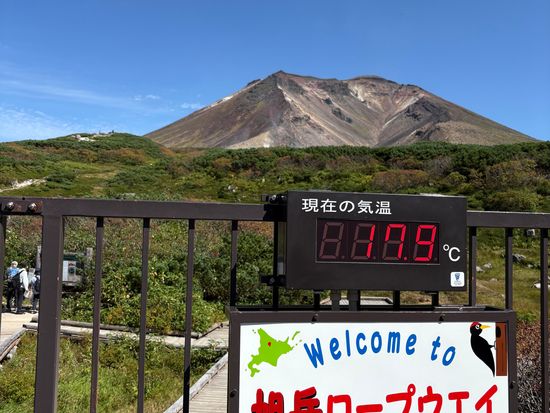 「JR旭川駅前〜天人峡羽衣の滝〜旭岳〜旭川空港までの貸切観光タクシー夫婦で4時間コース」 今回は昨年に続き2度目の利用でしたが、偶然にも昨年と同じドライバーさんでビックリしました。そのお蔭で昨年以上に会話が進みました。そこでドライバーさんからのご提案で急遽、旭岳へ行くことになりました。その理由はあまりにも天気が良かったからなんです。旭岳は大雪山連峰の主峰標高2,291mで北海道最高峰。ロープウェイ