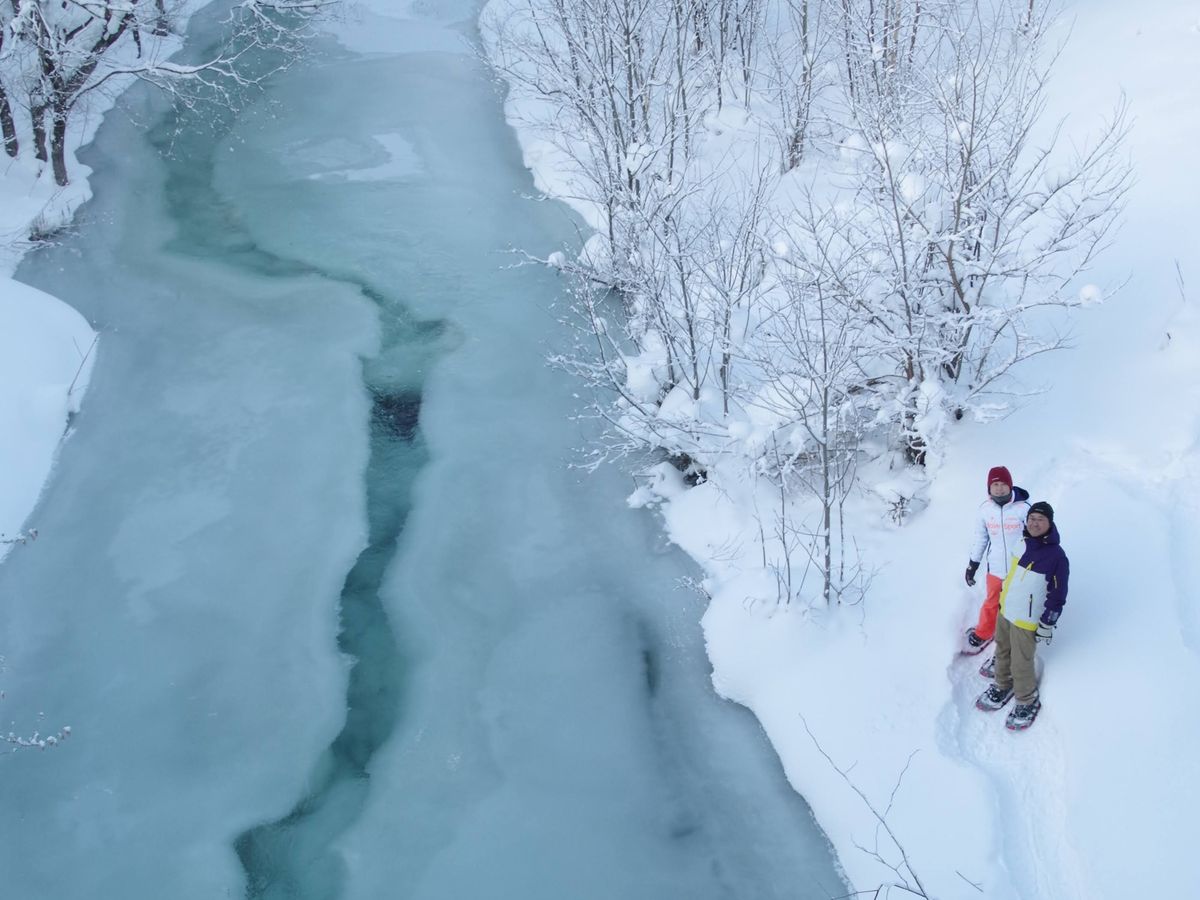 朝のスノーシューツアー 水と氷が生み出した不思議な自然現象川霧やフロストフラワーなどが見れるかも<3歳~参加OK12月~3月/富良野エリア送迎付き/富良野市>