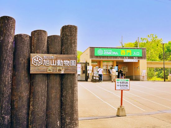 旭川市に入ってから、道道37号との交差点で左折し、さらに1キロメートルほど進み東旭川町上兵村(工業団地1条1丁目)(左側のコンビニが目印です)で左折し、道なりに約2km進むと、旭山動物園正門に到着します。