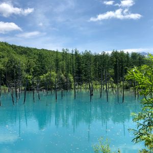 青い池では、天候にも恵まれ、想像以上の美しい景色でした。