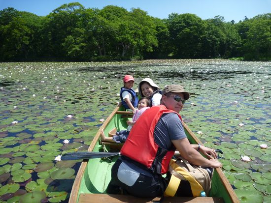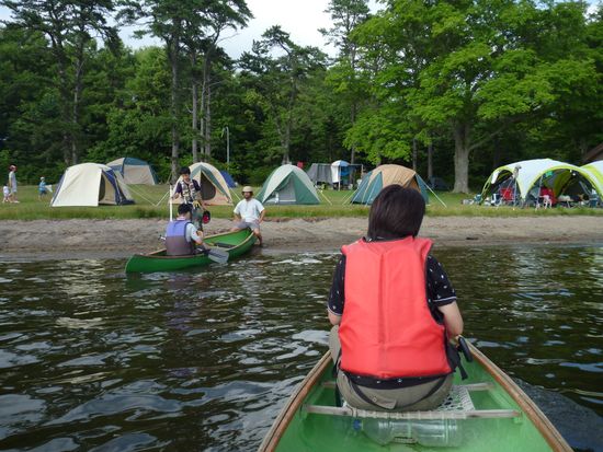 キャンプ道具をカヌーに積み込み、大沼の東側の東大沼キャンプ場までカヌーで向かいます。3~4時間のロングトリップ♪