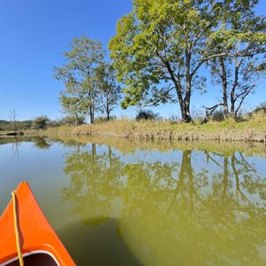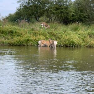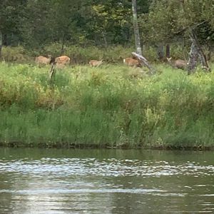 静寂のなかカヌーで川を進みながら、目に映る景色を堪能しました。所々で河岸で鹿と遭遇したり、ガイドさんの説明も程よくて心地よいカヌー体験でした。