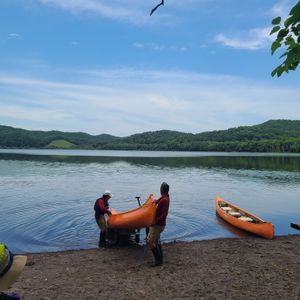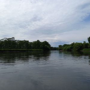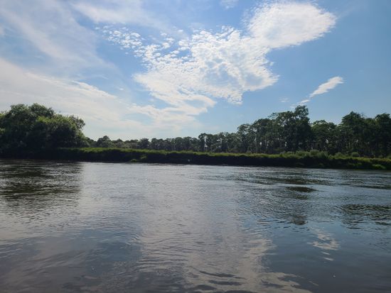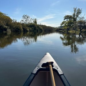 カヌーに乗って漕ぎ方を軽くレクチャーして頂き、まず少し湖の方へ漕ぎ出てくださり、川だけだと思っていたのでそれも嬉しかったです。