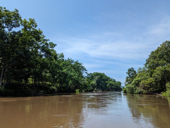 体験前日は雨が降ったので水かさが増していましたが 流れは穏やかでしたので 静かにこぐ感じで進みました。