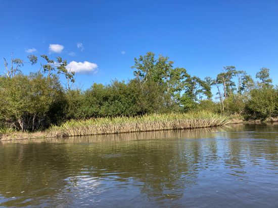 7月下旬、あいにくの曇天でしたが雨の後で水位が上がっていたとのことで、広く見渡すことができました。