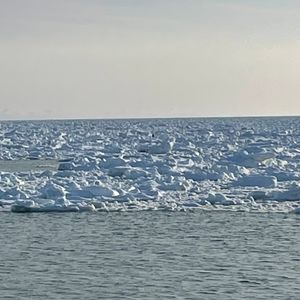 さらに、野付半島では、片岸で接岸してきた流氷まで見られるサプライズ!もう一方の片岸では、溶解間際の氷上で歩行体験。