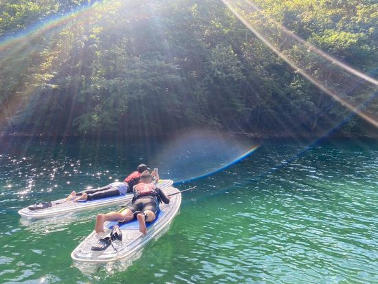 支笏湖クリアSUP 支笏湖ブルーを透明のボードでお手軽体験!<手ぶら参加OK/写真データ付/2~2.5時間>byオーシャンデイズ