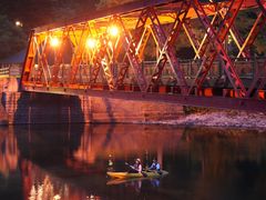 夜の静けさの中でのカヤックはどきどき満載!静寂の支笏湖の大自然の中から、どんな動物たちが姿を見せてくれるかは、ツアー参加時のお楽しみです♪千歳川源流と支笏湖の境目にある土木遺産山線鉄橋のライトアップも見どころのひとつ。