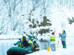 札幌市内中心部から車やバスで片道約1時間ほどの所にある『美泉定山(みいずみ・じょうざん)』が開祖と言われる支笏洞爺国立公園内にある豊かな自然の湯どころの定山渓温泉。その定山渓時間をもっと面白く、もっと美味しくする新たな拠点「心の里 埜(の)のてらす」発着のラフティングツアー。温泉街を流れる札幌市内を流れる豊平川で雪の積もった景色を普段は味わうことのできない川からの視点でラフティングを体験しながらお楽しみください。