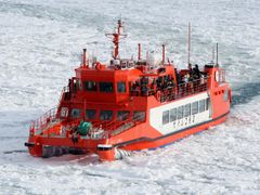 神秘的な流氷を間近で楽しむ流氷岬・紋別温泉2日間宿泊ツアー!流氷観光船ガリンコ号は、冬の時期にオホーツク海に流れ着く流氷の上を進むための特殊な設計が施されており、船の先端に大型のドリルが取り付けられています。このドリルで流氷を砕きながら進むことができ、他の船では近づけないような流氷の近くまで観光客を案内することができます。流氷観光は冬ならではの北海道の人気アクティビティです。
