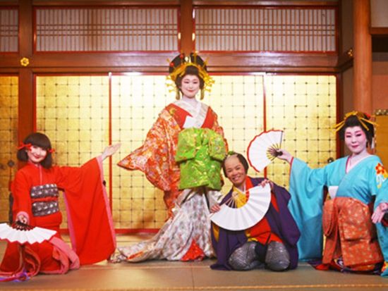 門をくぐり抜けたら、そこは江戸時代⁉街道に軒を連ねるのは、商家や立派な武家屋敷、そしてカラクリが満載の忍者屋敷。町には武士、忍者、花魁や町人たちが息づき、アクションや華麗なパフォーマンスを見ることができます。