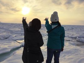 知床流氷ウォッチ+サンセット鑑賞ツアー 世界遺産知床の流氷の上でオン・ザ・ロック!嬉しいアルコールorドリンク付き<夕方/2~3月/斜里町ウトロ温泉発着>