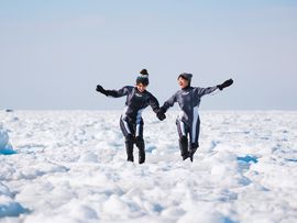 知床 流氷ウォーク® 真っ白な流氷の世界へ出発!氷の上を歩いて、寝そべって♪海に落ちてもプカプカ浮かぶので安心!<2~3月/ウトロエリア送迎あり>byシンラ