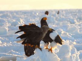 知床羅臼 流氷クルーズ&バードウォッチング 船の上からオホーツク海の流氷と知床半島で生きる天然記念物オオワシたちを観察しよう<1~3月/羅臼町>